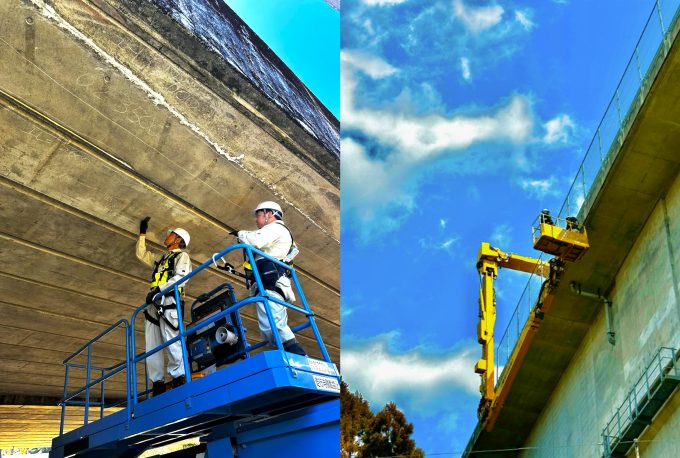 「点検」 道路や橋といったインフラ設備は、管理が行われていない状態だと劣化が早く、倒壊や破損、 崩落といった危険性が高まります。定期的な点検や必要に応じて補修等を行うことにより、 みなさんの安心と安全を守っています。
